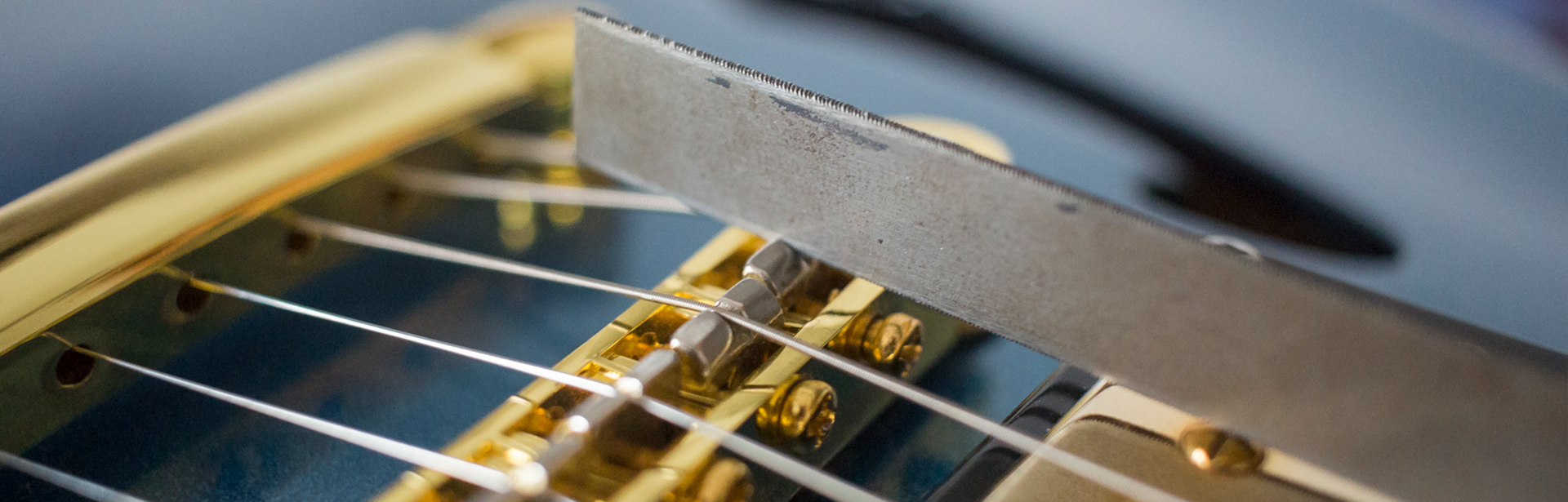 Serwis i ustawienia – Prowadzę standardowy serwis. Wykonuję pełną regulacje instrumentów. Wiąże się to z rozbiórką i poprawieniem całej gitary na kolejnych etapach składania. Dzięki temu mogę poprawić to co zostało przeoczone, lub zrobione byle jak w fabryce. Mam w rękawie kilka własnych patentów, efekty bywają zaskakujące, uwzględniając seryjne progi. Ustawienie wiąże się też z przeróbką niektórych części, w tym metalowych. W związku z tym, oferuję usługi ślusarskie/cięcia np. stalowych siodełek blokowanych, wiercenie w kluczach, korygowanie nacięć mostów metalowych ze stałym radiusem itp…