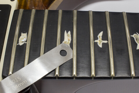 7. Podczas szlifowania progów nie jest możliwe korygowanie wypaczeń, skręceń czy wad podstrunnicy. Wszelkie tego typu niedoskonałości muszą być wyeliminowane poprzez profesjonalny szlif podstrunnicy.