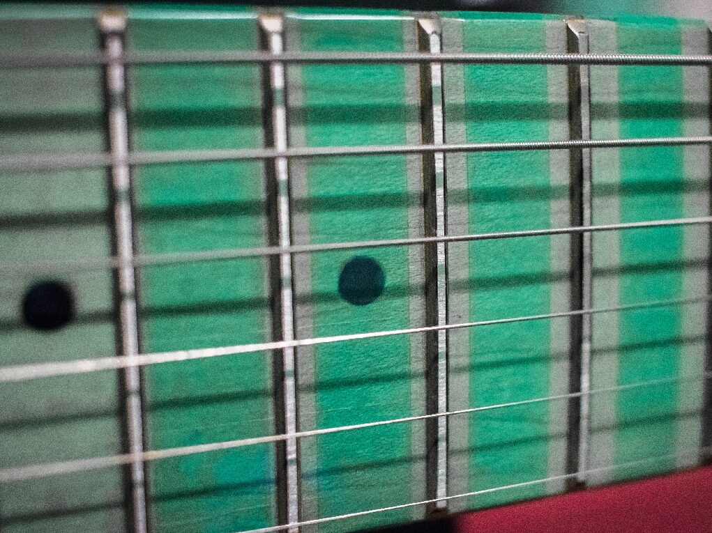 5. Ze względu na niedoskonałości w geometrii podstrunnicy i progów, bywa że uzyskanie prostej linii na progach jest w ogóle nie możliwe i szlifuje się je tyle ile się da.