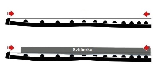 Przykład wyrównania progów. Po przeszlifowaniu, płaskie korony należy zaokrąglić.