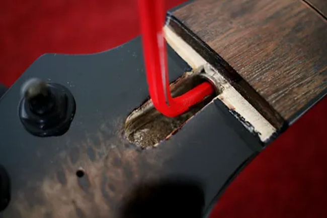 Jeżeli chcesz samodzielnie regulować gryf, użyj dobrego klucza, zazwyczaj imbusowego rozmiar 4. Upewnij się że dobrze pasuje do gniazda i nie ma większych luzów przy kręceniu, łatwo uszkodzić gniazda źle dopasowanym kluczem! Uważaj na tanie chińskie badziewia!
