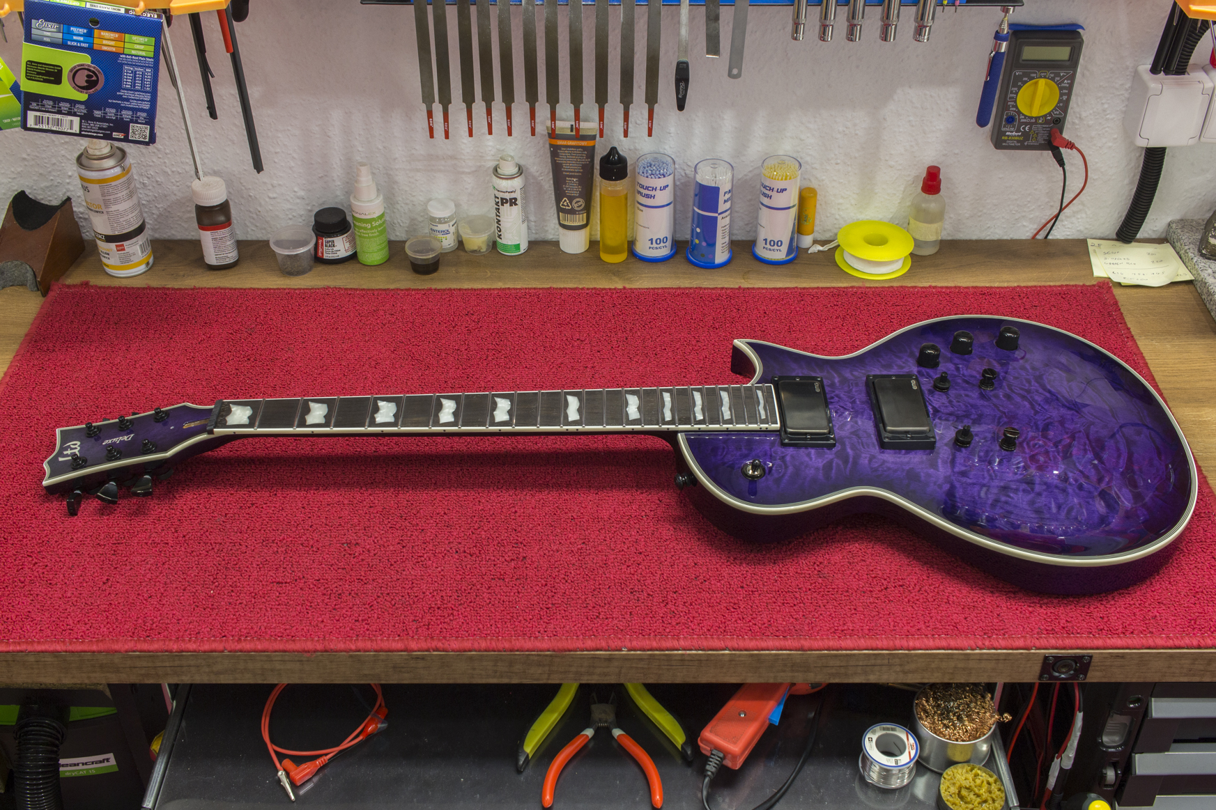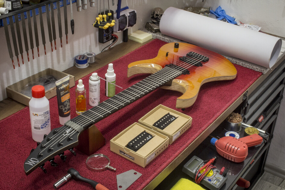 Nierzadko instrument po zabiegach zmieni się nie do poznania, nawet na fabrycznych progach. Znam kilka tricków, które pomogą uwolnić pełen potencjał Twojego sprzętu. W moim serwisie, mogę rozebrać gitarę do zera i złożyć ją do kupy, a po drodze robić pełną regulację, oraz poprawę całego osprzętu – wraz z niezbędnymi poprawkami. To, często wiąże się z koniecznymi przeróbkami elementów gitary. Są to czynności takie jak np. obróbka mechaniczna wszelkich materiałów, nawet tych metalowych. Wszystko to, jest przeze mnie przewidziane, a warsztat jest uzbrojony i przygotowany na różne scenariusze.