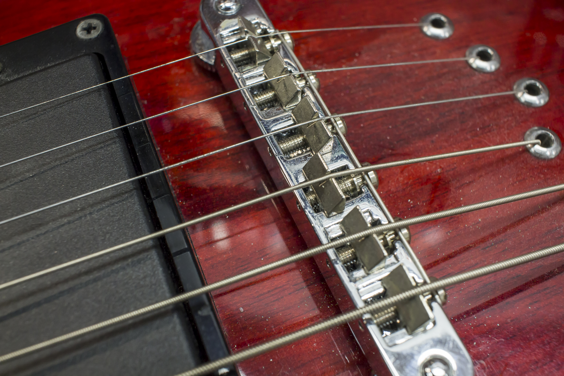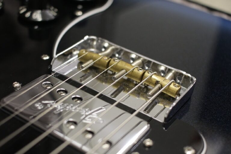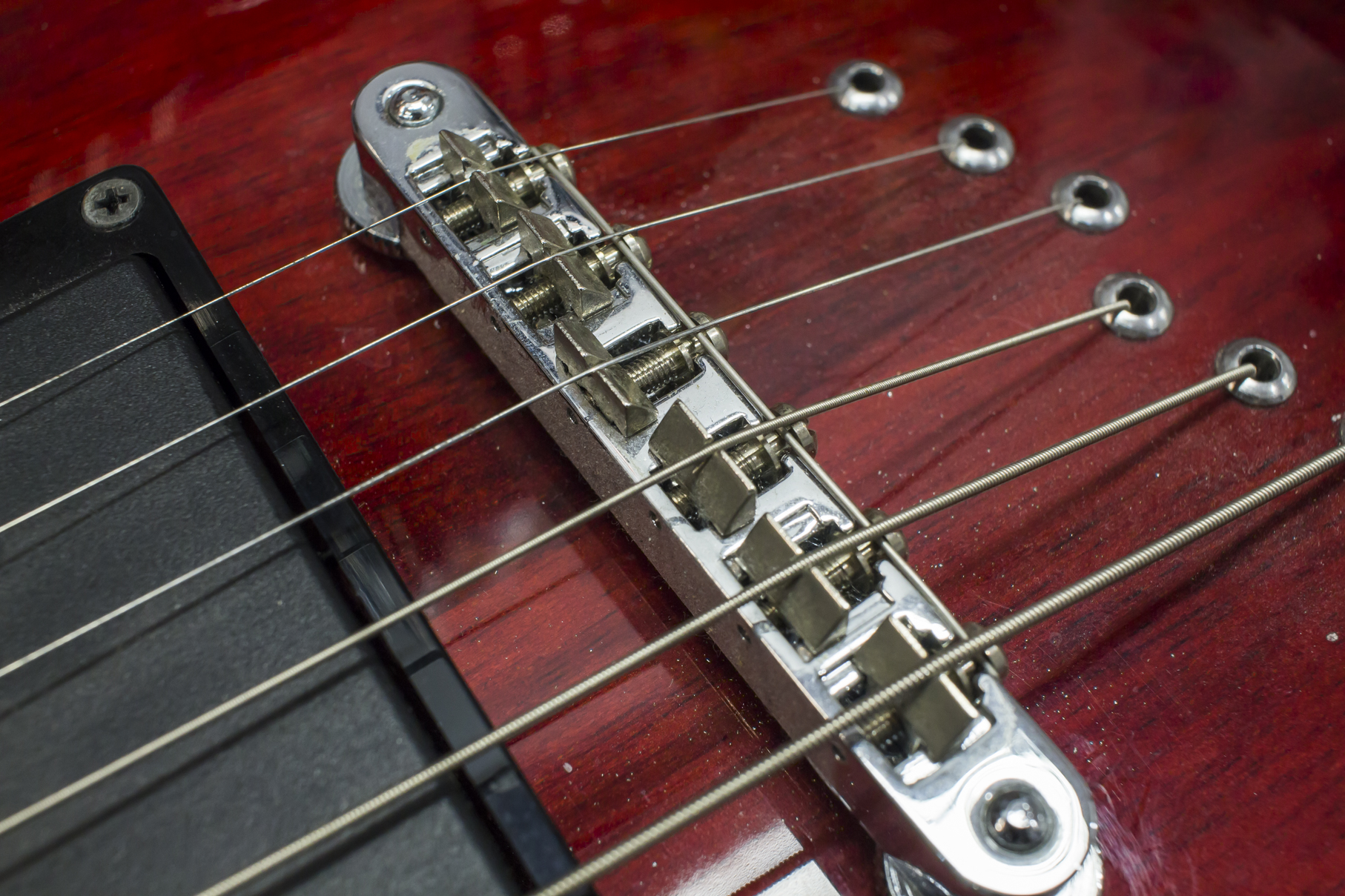 Po wyregulowaniu gryfu, akcję gitary ustawiam na mostku. W zależności od jego konstrukcji istnieje wiele sposobów regulacji. Najprostszym i najbardziej praktycznym rozwiązaniem jest możliwość ustawienia każdej struny indywidualnie. Niestety nie zawsze tak jest, w mostkach takich jak tune-o-matic wysokość ustawiona jest na stałe, a regulacje przeprowadza się kręcąc trzpieniami znajdującymi się na skraju mostka. Warto sprawdzić czy struny zachowują prawidłowy promień. Czasami konieczne jest poprawienie rowków poprzez piłowanie.