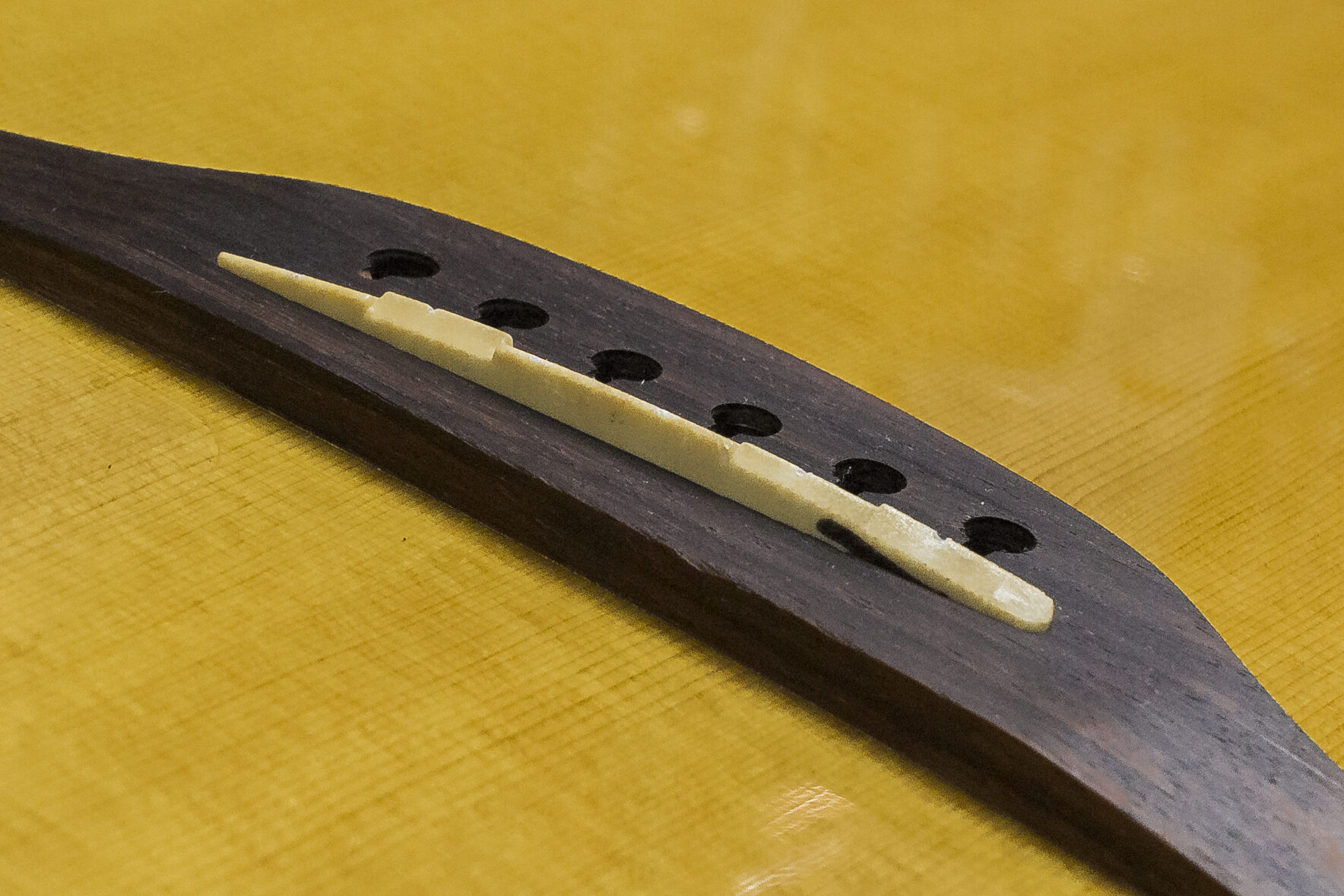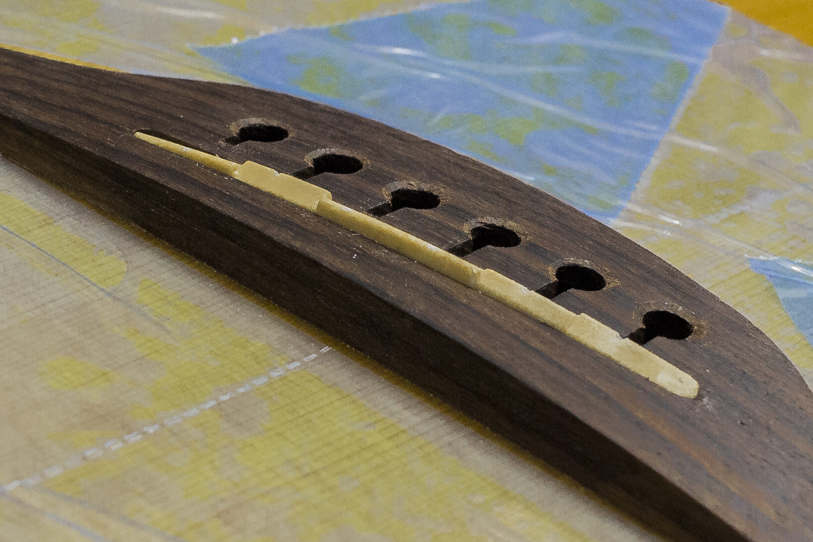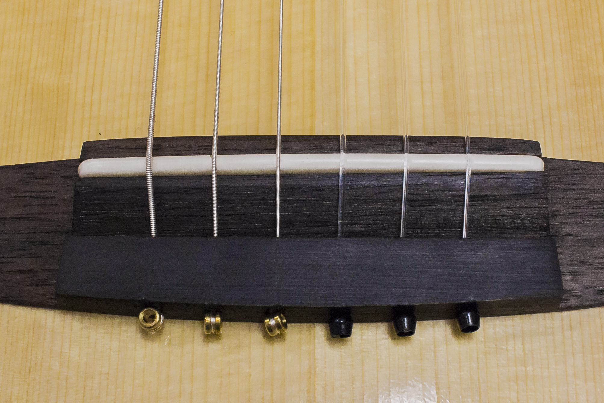 Po wyregulowaniu gryfu, akcję gitary ustawiam na mostku. W zależności od jego konstrukcji istnieje wiele sposobów regulacji. Najprostszym i najbardziej praktycznym rozwiązaniem jest możliwość ustawienia każdej struny indywidualnie. Niestety nie zawsze tak jest, w mostkach takich jak tune-o-matic wysokość ustawiona jest na stałe, a regulacje przeprowadza się kręcąc trzpieniami znajdującymi się na skraju mostka. Warto sprawdzić czy struny zachowują prawidłowy promień. Czasami konieczne jest poprawienie rowków poprzez piłowanie.